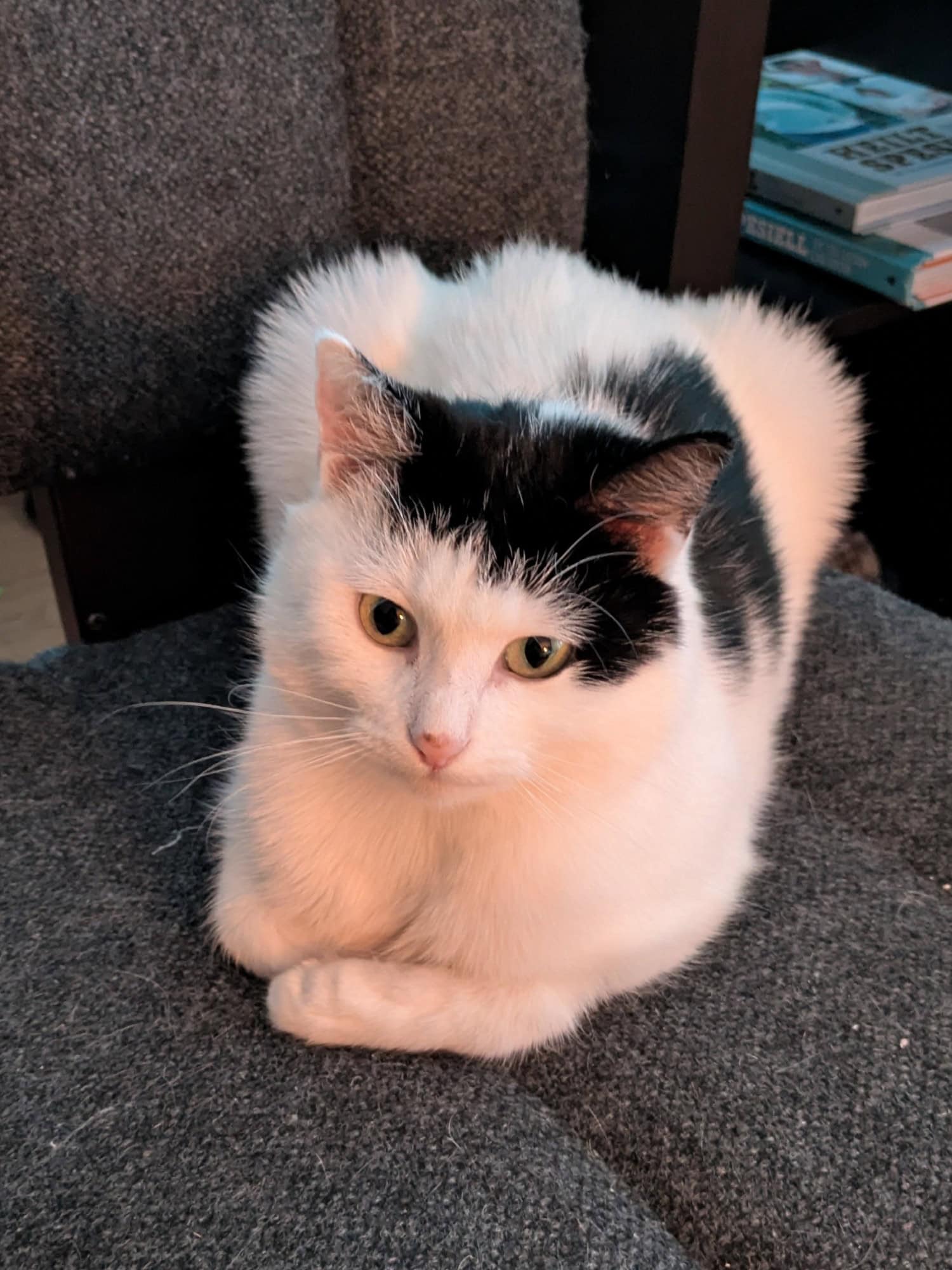 Ninni kom inn til oss i september 2025 fra Nordskaget på Frøya, hvor hun hadde blitt observert gående ute. Ved inntak var hun redd, men etter å ha vært hos våre flinke fosterhjem har hun blitt mye tryggere, og hun er nå klar til å finne sitt for-alltid-hjem! Hun har estimert fødselsdato 02.09.2024.