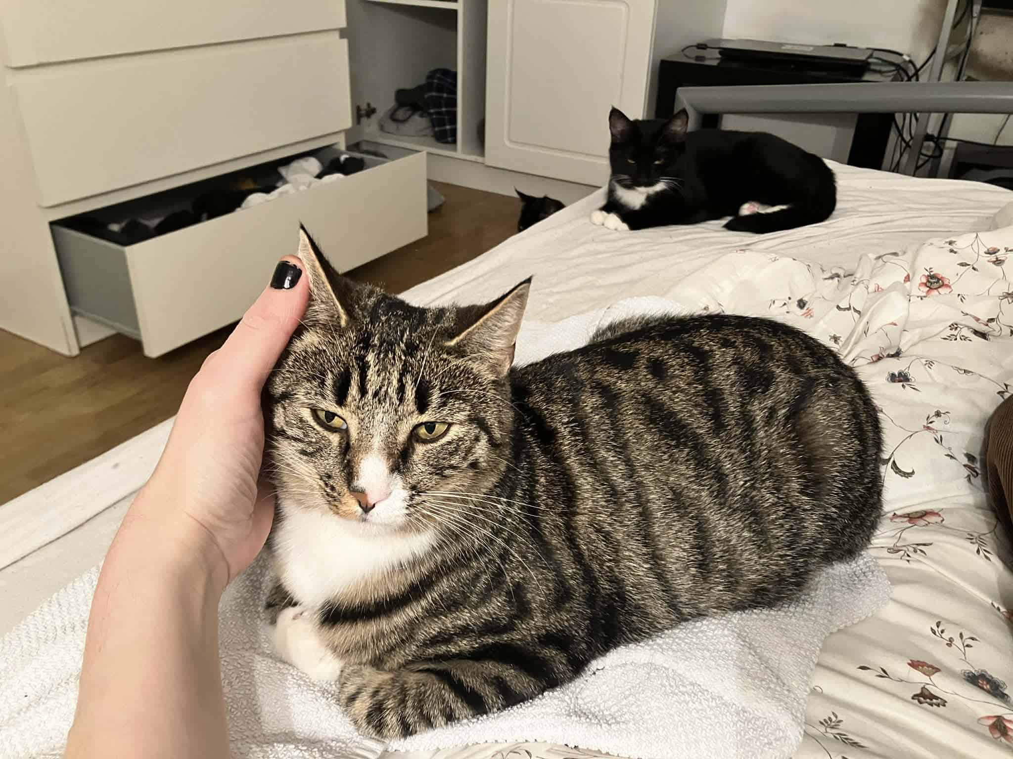 Rosita kom inn til oss i juli 2025 sammen med sine tre små kattunger. De kom inn fra Rennebu, hvor hun hadde blitt observert gående ute i 2-3 måneder. Ved inntak var Rosita tam og tok imot kos, og etter et lite opphold i fosterhjem er hun nå kjempeklar for å finne sitt nye hjem! ♥ Hun har estimert fødselsdato 01.01.2024.