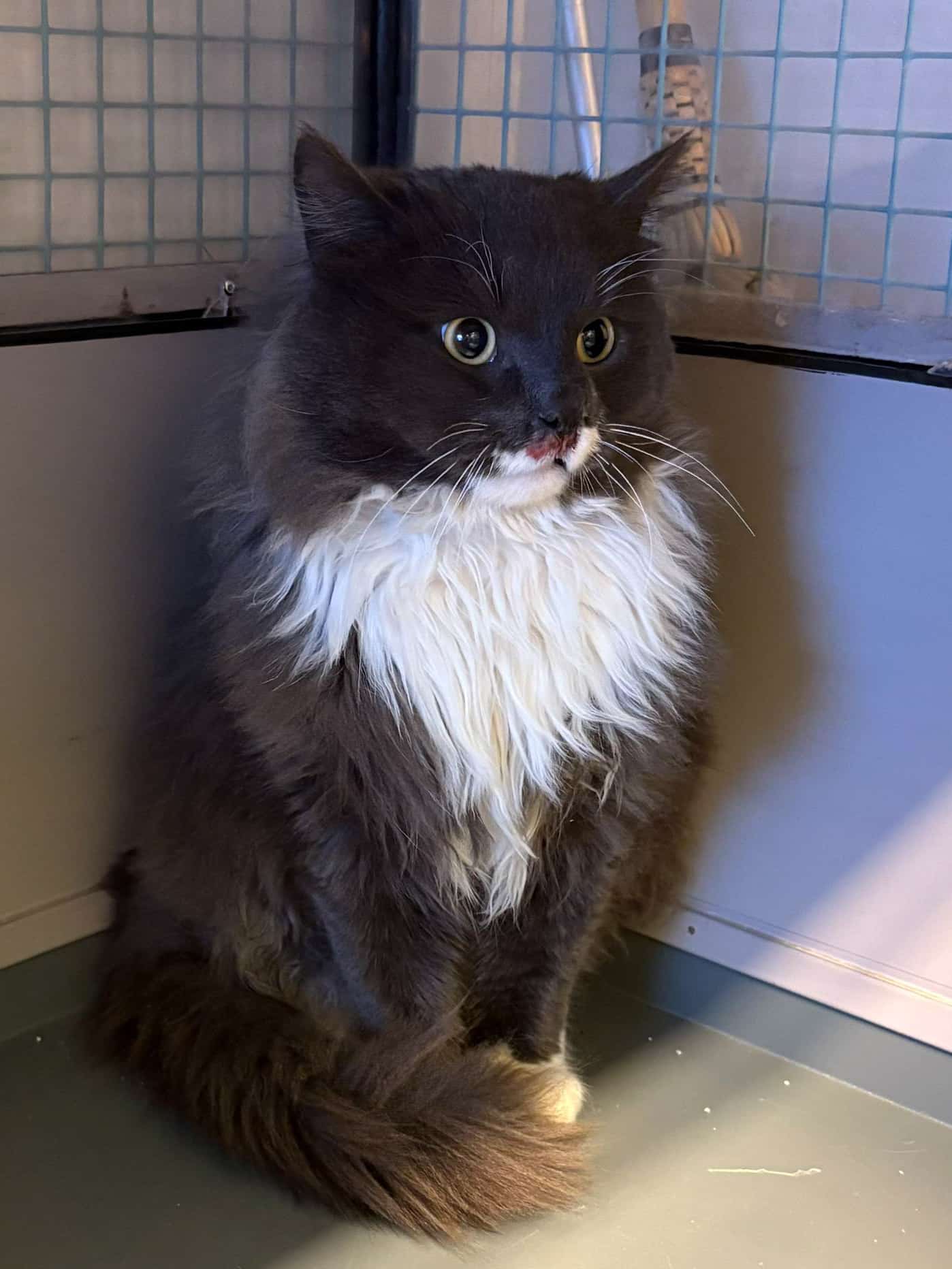 Denne hannkatten kom inn til oss fra Storås i Orkland kommune, hvor han hadde blitt observert gående hjemløs ute over tid sammen med flere andre katter. Han er dessverre verken kastrert eller ID-merket.