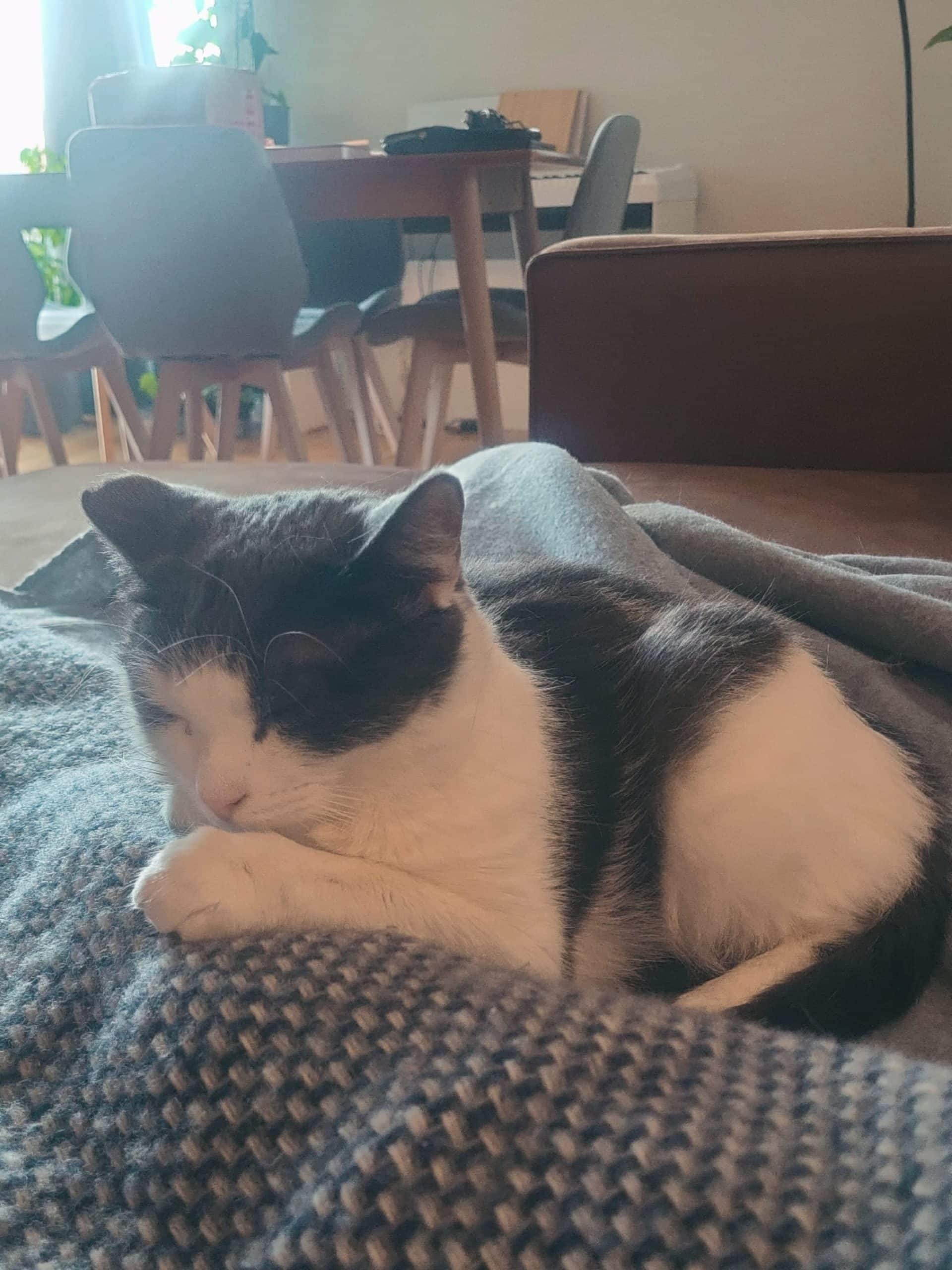 Frid kom inn til oss i september 2024 fra Fannrem i Orkland kommune, hvor hun hadde gått ute i en koloni sammen med flere andre katter. Hun var ganske redd da hun kom inn til oss, men har gradvis blitt tryggere etter å ha vært hos våre flinke fosterhjem. Hun er allikevel ikke helt trygg enda, og Frid ønsker seg et tålmodig og trygt hjem som kan gi henne nok tid til å blomstre helt.