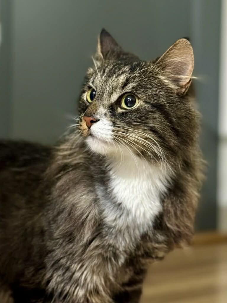 Hils på nydelige Tøfflus! Han kom inn til oss i januar 2026 fra Fannrem, hvor han hadde blitt observert gående haltende rundt ved et hageland og så blitt fanget inn og levert til dyrlege. Da han kom til oss var han avmagret og hadde pels som var i veldig dårlig stand. Rundt venstre forbein hadde han også et strikk/bånd som hadde laget et sår. Tøfflus var allerede en tam og kosete pus ved inntak, og etter et lite opphold hos våre flinke fosterhjem, er han nå kjempeklar for å finne sitt nye hjem!