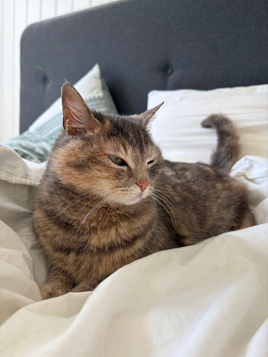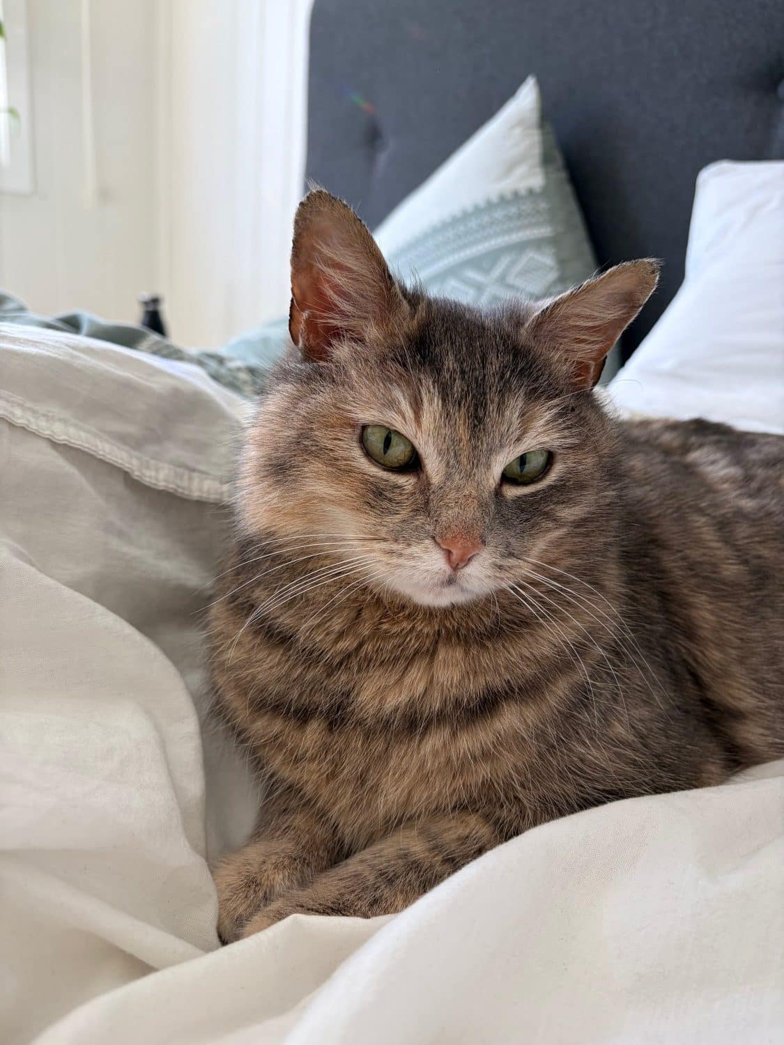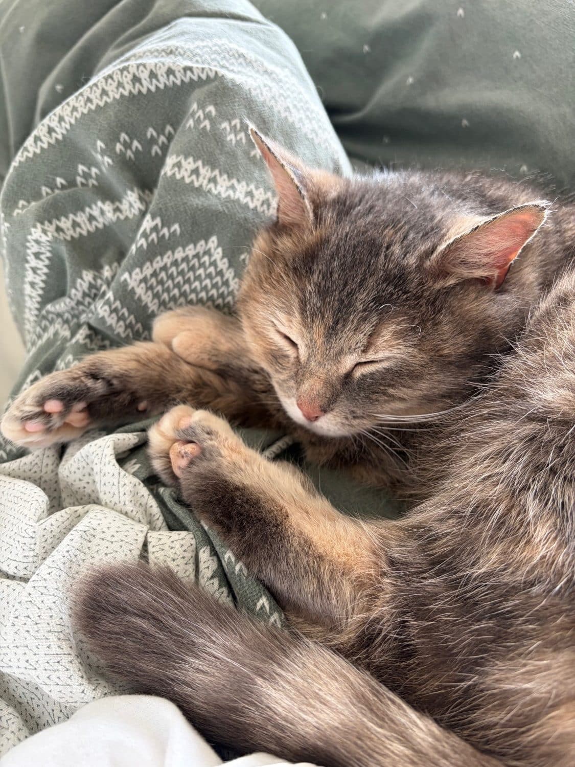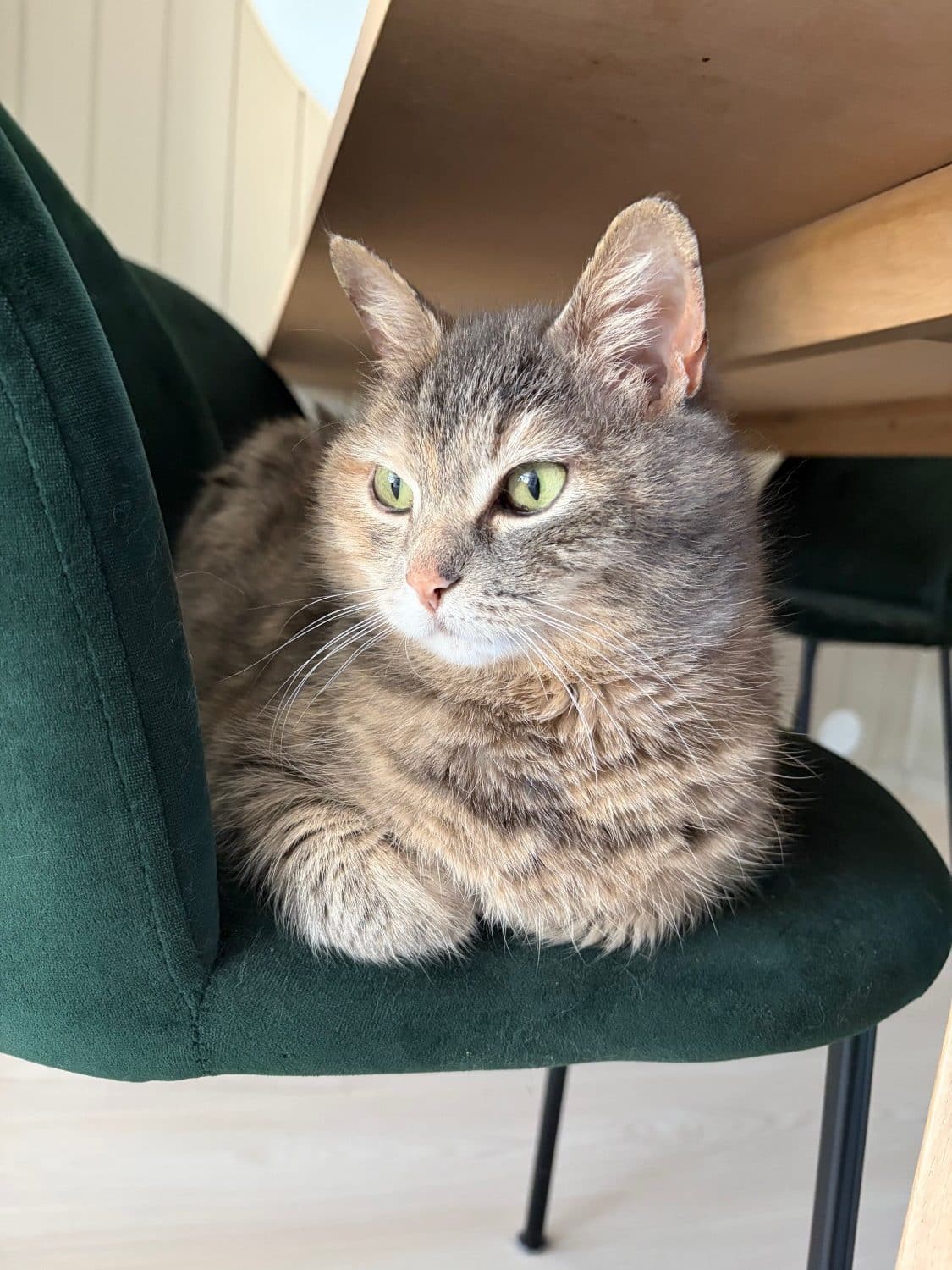 Møt søte Melissa! Hun kom inn til oss i mars 2026 fra Melhus, etter å ha blitt observert gående ute ved Rema 1000 Gaula. Hun var allerede snill og kosete da hun kom inn til oss, og er allerede veldig klar for å finne sitt for-alltid-hjem! ♥