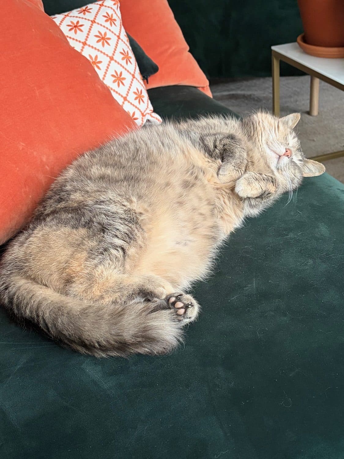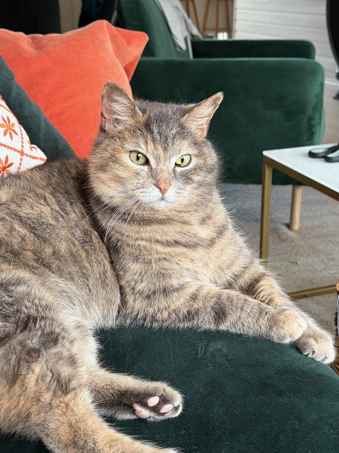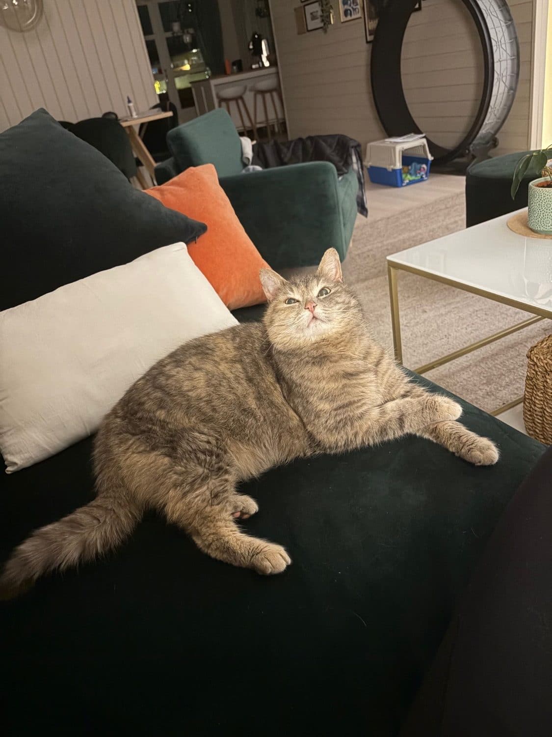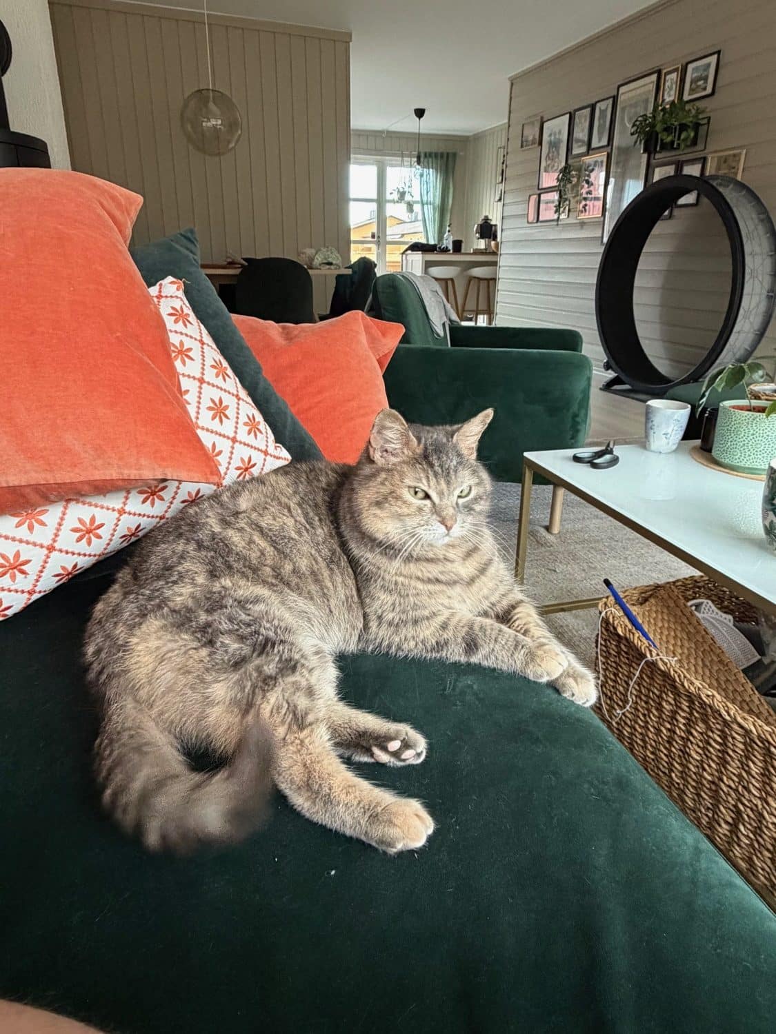 Fosterhjemmet forteller: «Melissa er en helt fantastisk søt og myk kosekatt. Det beste hun vet er å ligge på fanget eller ved siden av deg og kose, så hun er helt perfekt for folk som trenger en rolig, avslappet venn som tar livet med ro. Hun er litt lat, så du er ofte den som må ta initiativet til lek, men da liker hun å jage og hoppe etter hyssinger.»