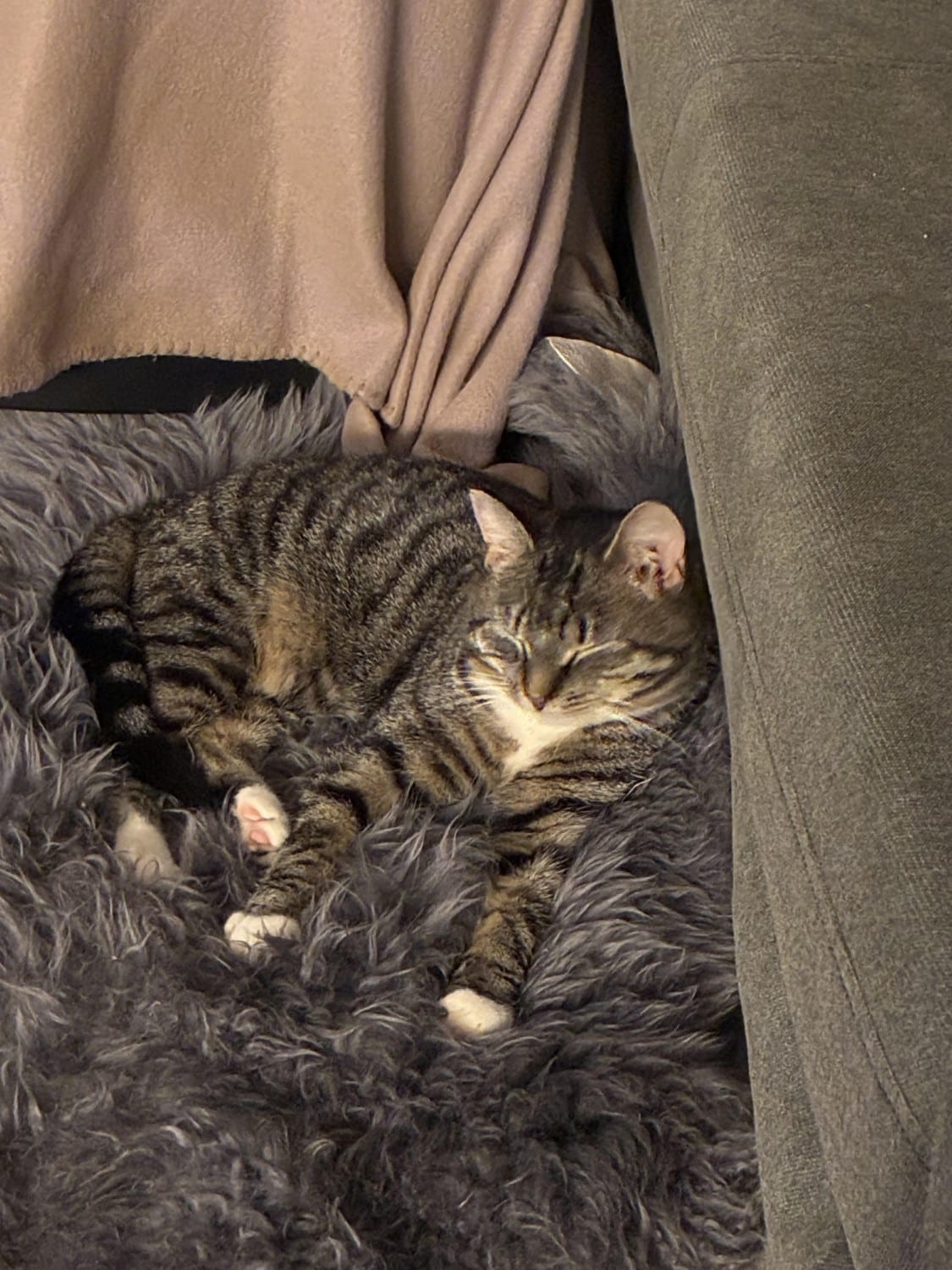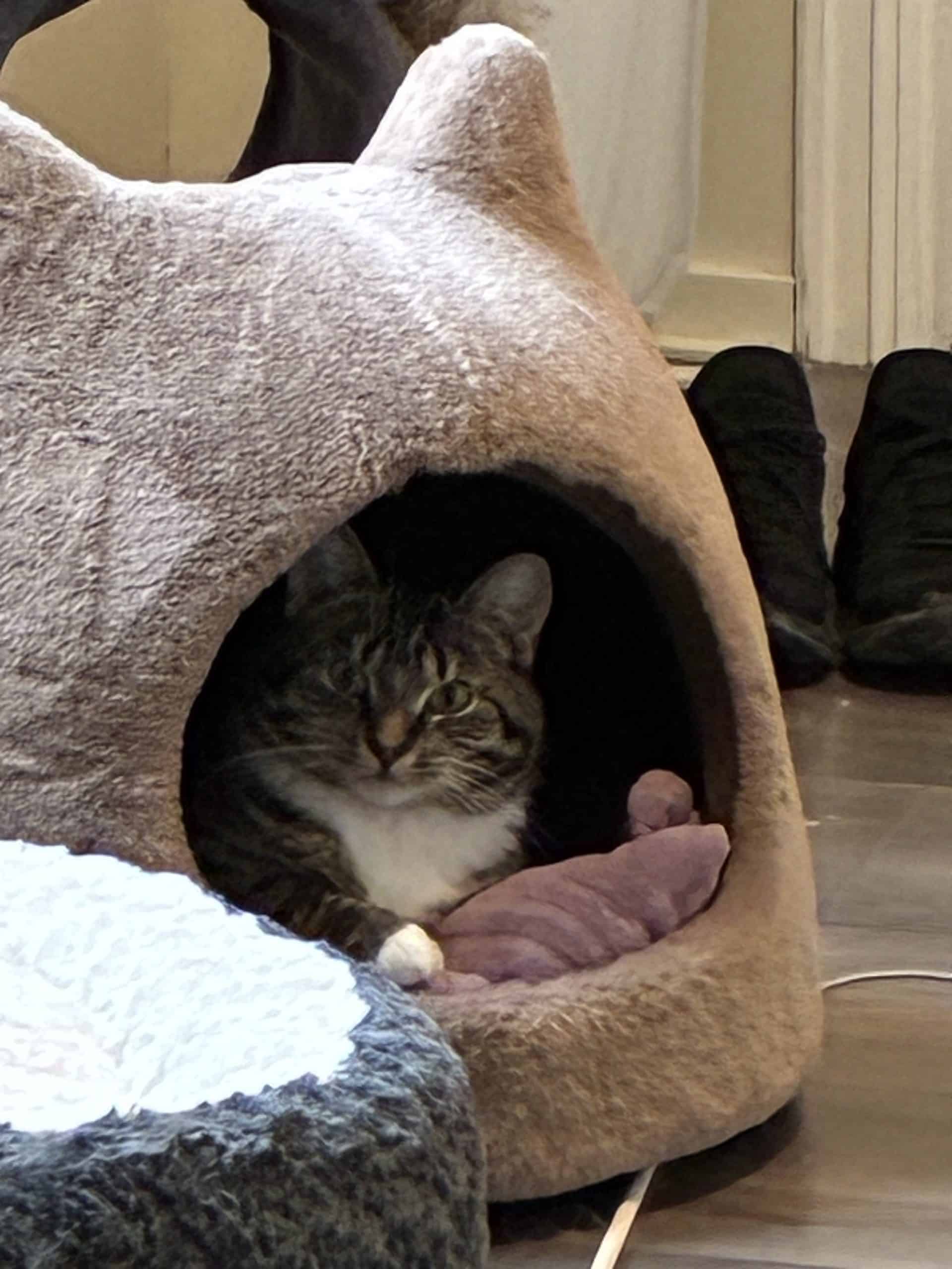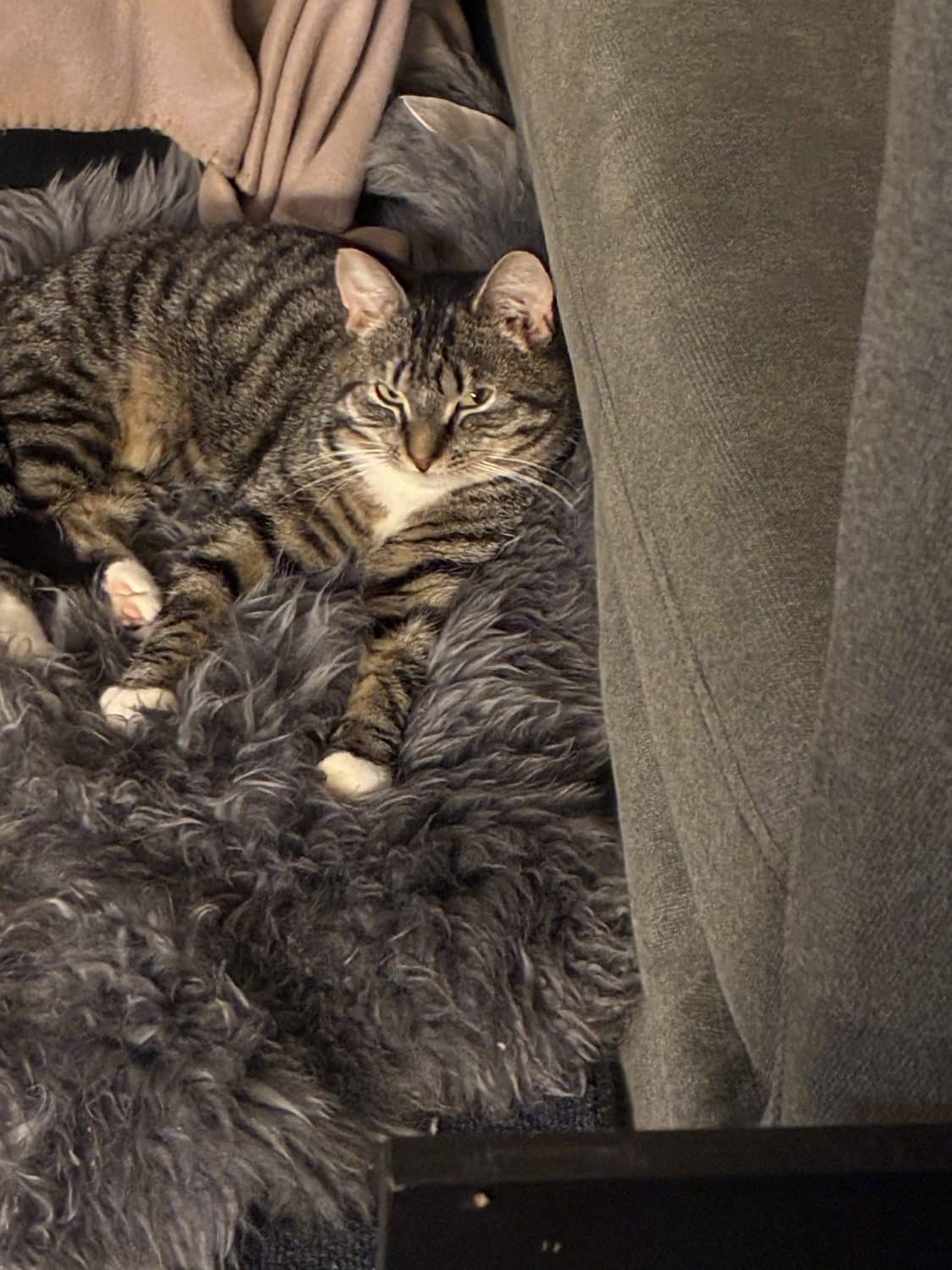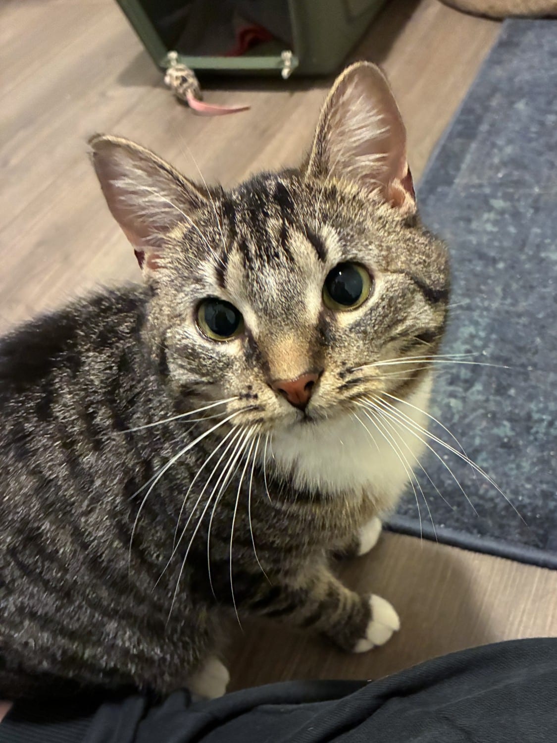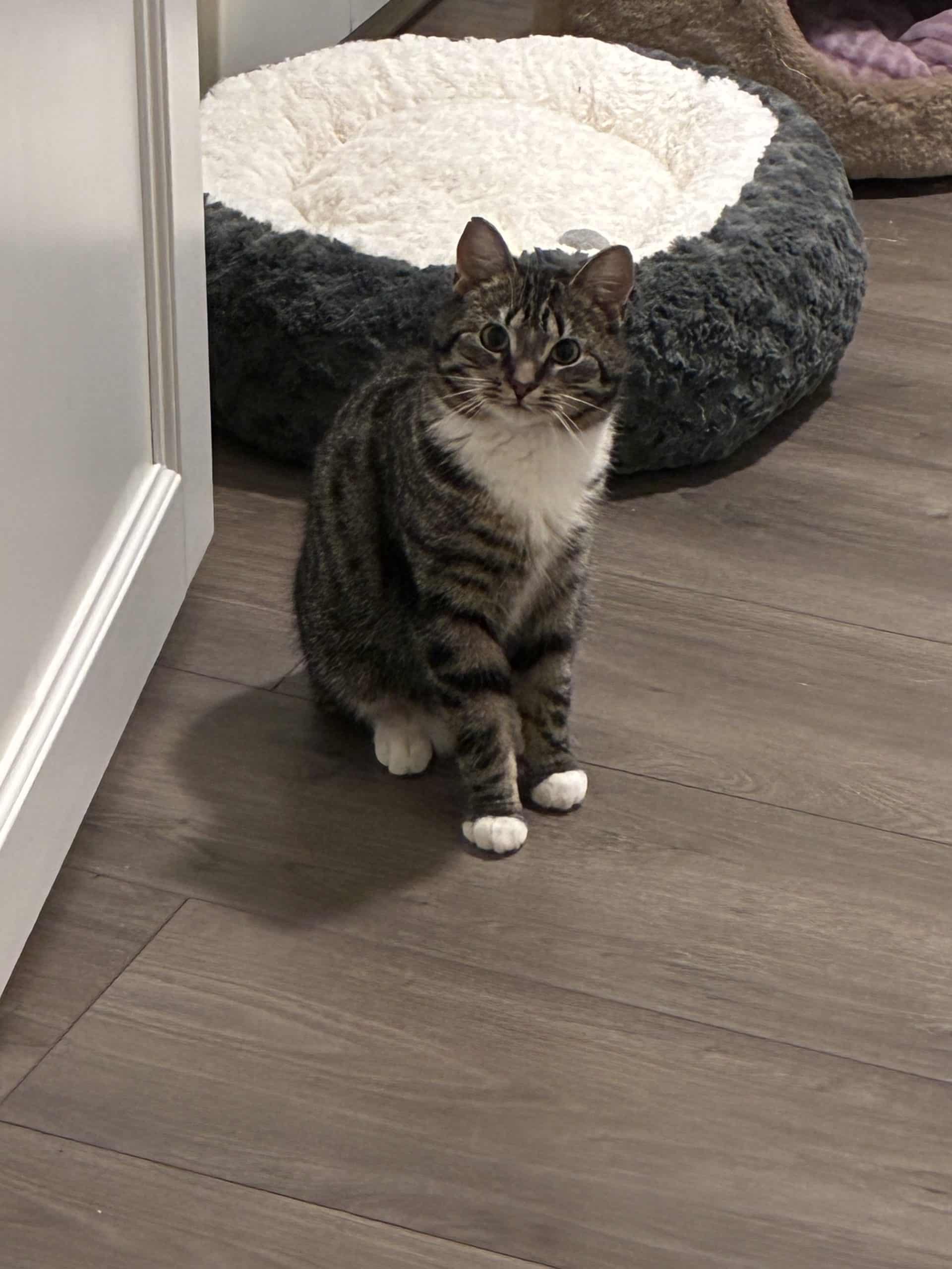 Daniel kom inn til oss i november 2025 fra Daløya på Frøya, hvor han hadde gått hjemløs ute over tid. Da han kom til oss var han litt redd, men etter en periode i et av våre flinke fosterhjem har han vist seg å være en energisk og kosete pus, som nå håper på å finne sitt for-alltid-hjem! ♥ Han trenger et hjem uten barn, siden han ikke er så glad i brå bevegelser.