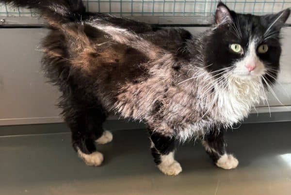 Katt funnet! Denne hannkatten kom inn til oss fra Hølonda i Melhus kommune. Her hadde han blitt observert gående ute i to uker, og var sulten og ba om mat…