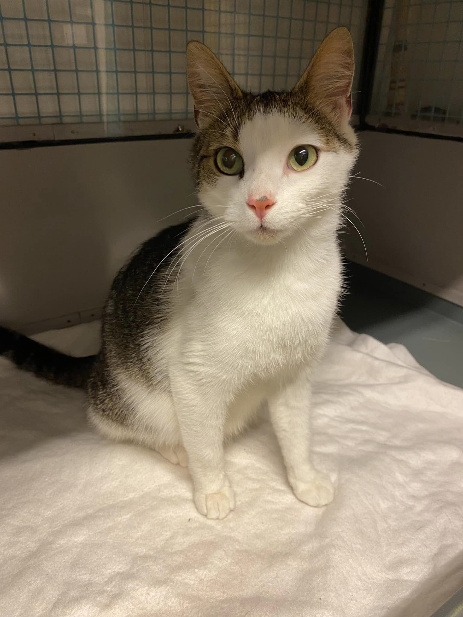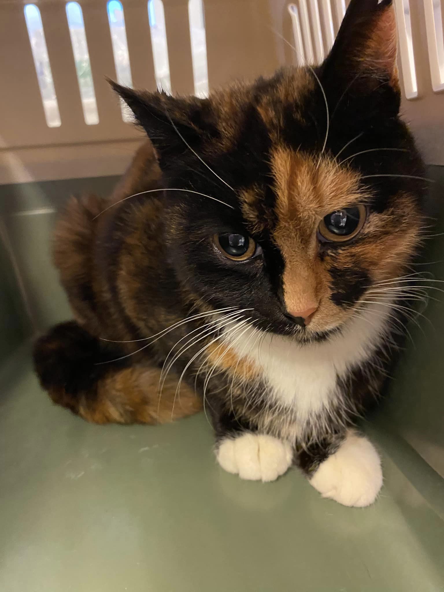 Katt funnet! Denne hunnkatten er tatt inn fra Selbu med kattungene sine. Hun er dessverre ikke ID-merket. Katten har kort skilpaddemønstret pels, med hvitt på føtter og bryst, og rosa…