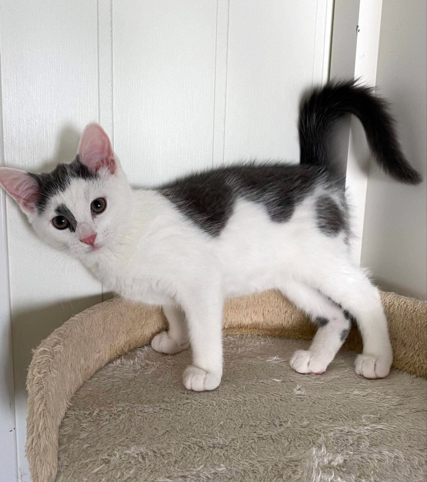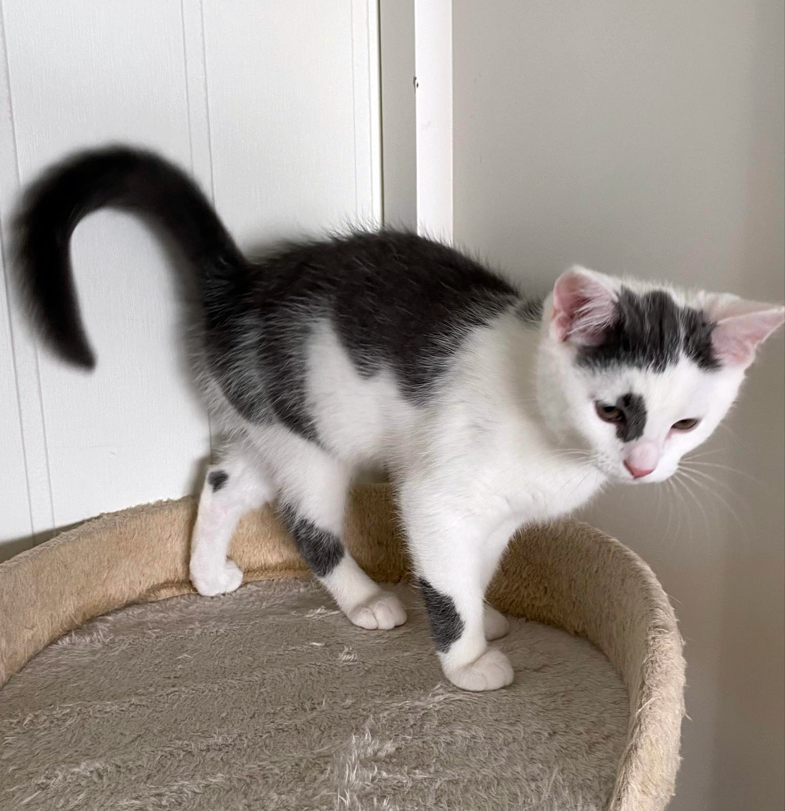 Bettie kom inn til oss sammen med sine to søsken Betsy og Balto i juli 2024 fra Bjugn, hvor de ble funnet ute morløse. De er antatt født 01.06.2024.