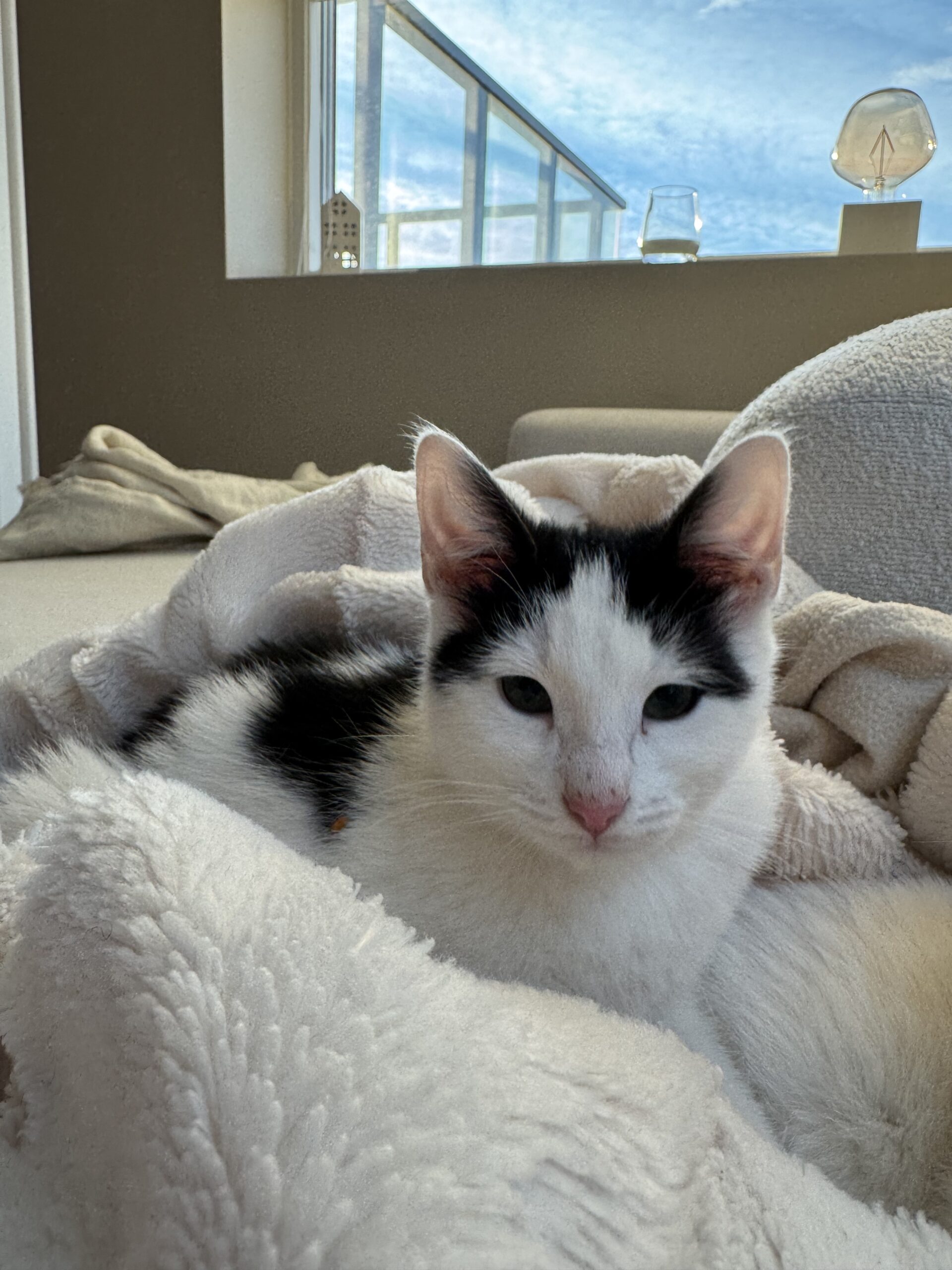Guri er ei nydelig pusejente med kort hvit og sort pels. Hun er en heltam og trygg katt. ♥