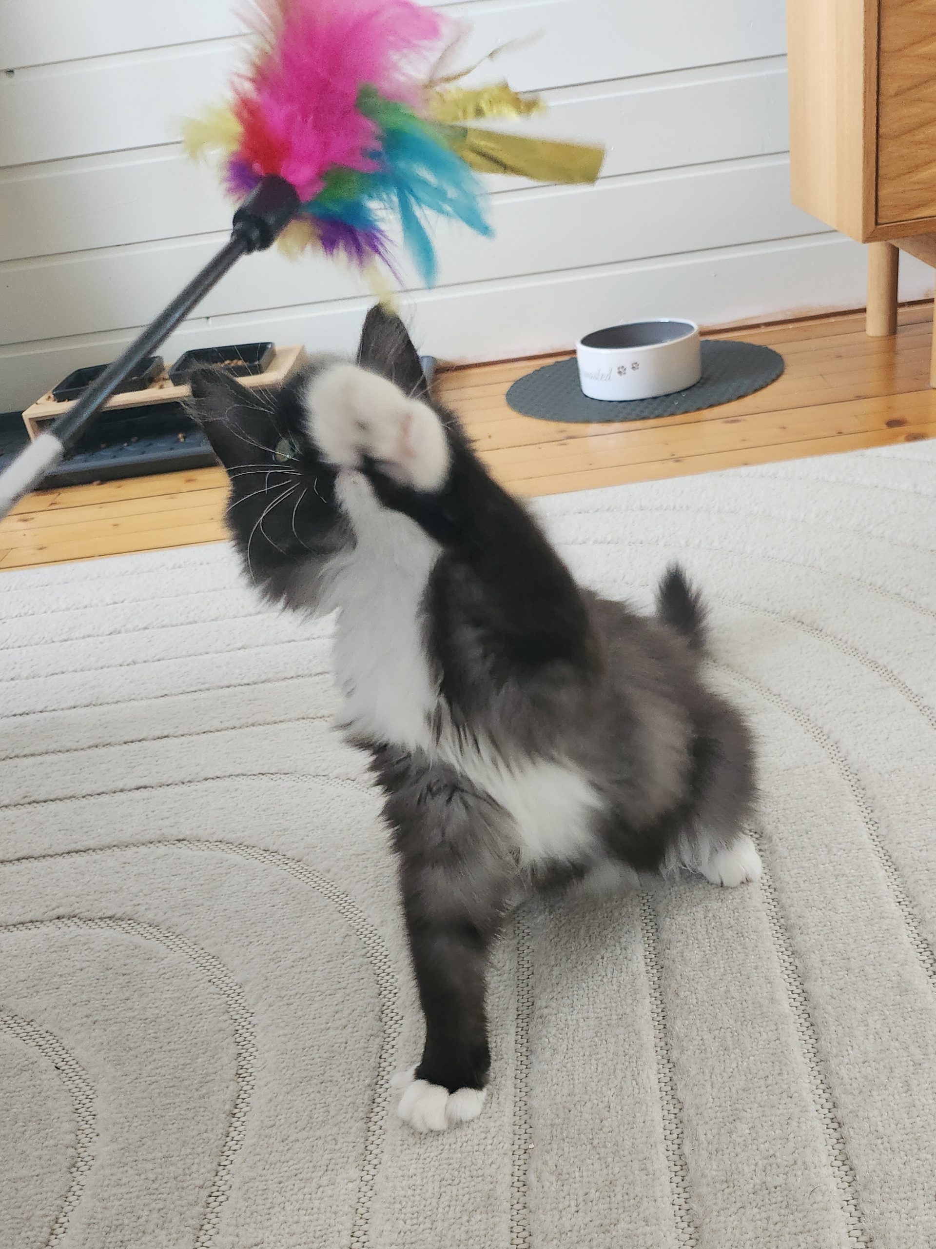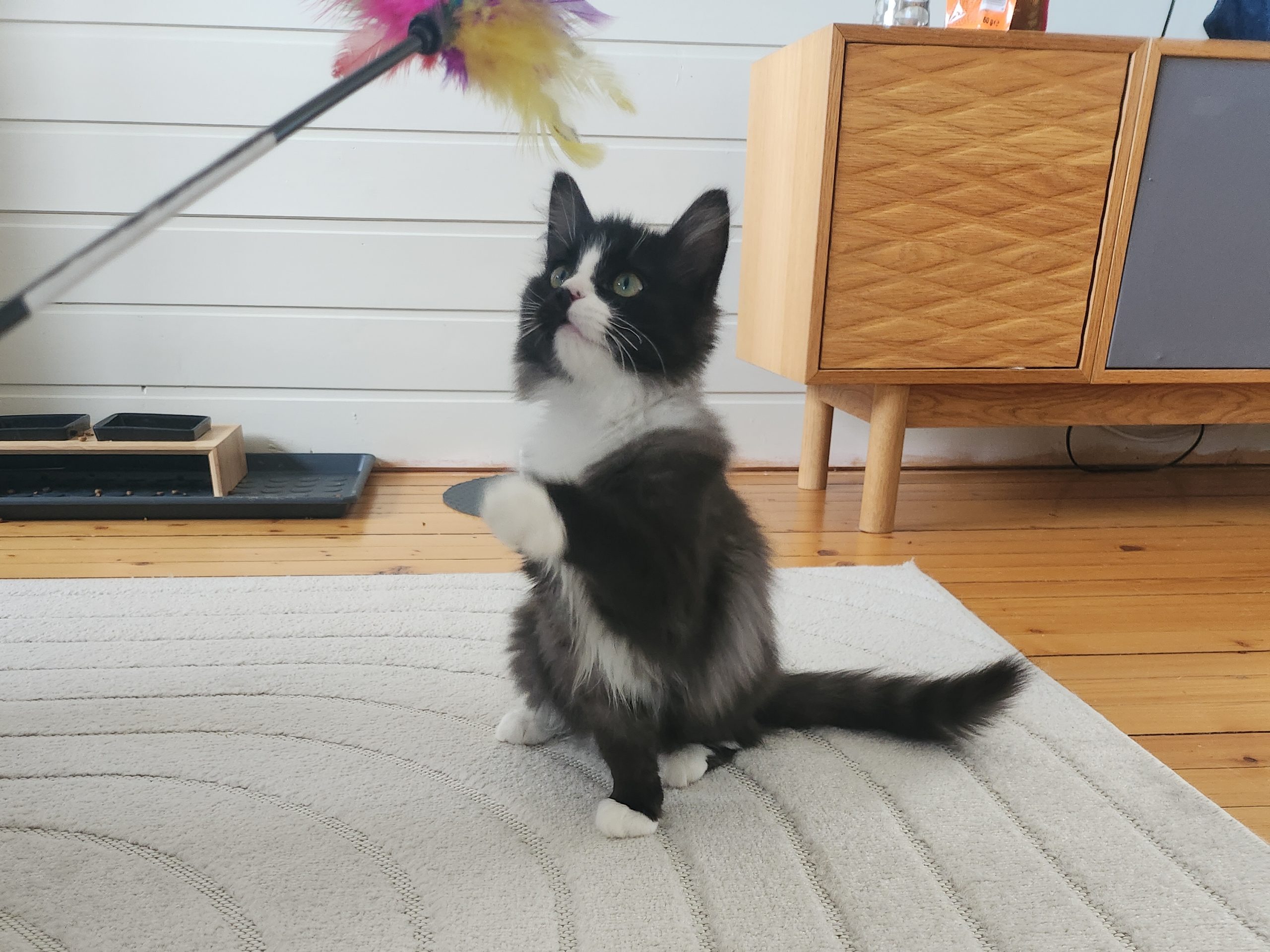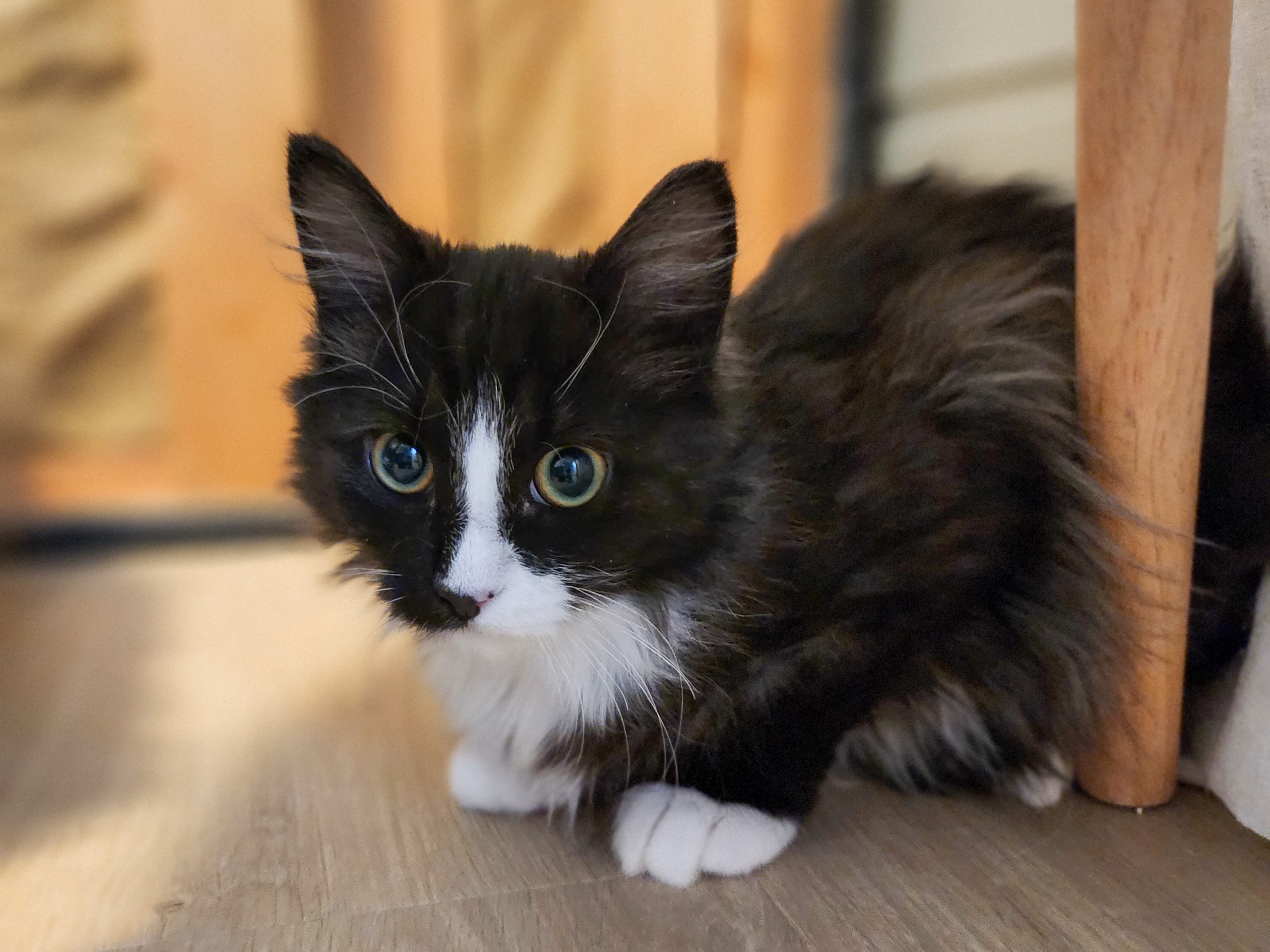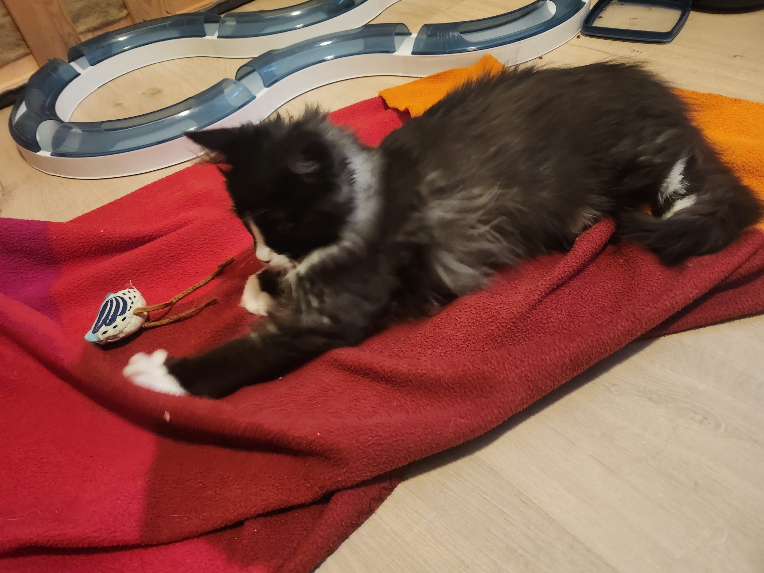 Nilas kom inn til oss i august 2025 fra Frøya, hvor han hadde gått hjemløs ute sammen med moren over tid. Ved inntak var han rundt 4 uker gammel, og han var redd og hadde flokete pels. Han har antatt fødselsdato 01.07.2025.