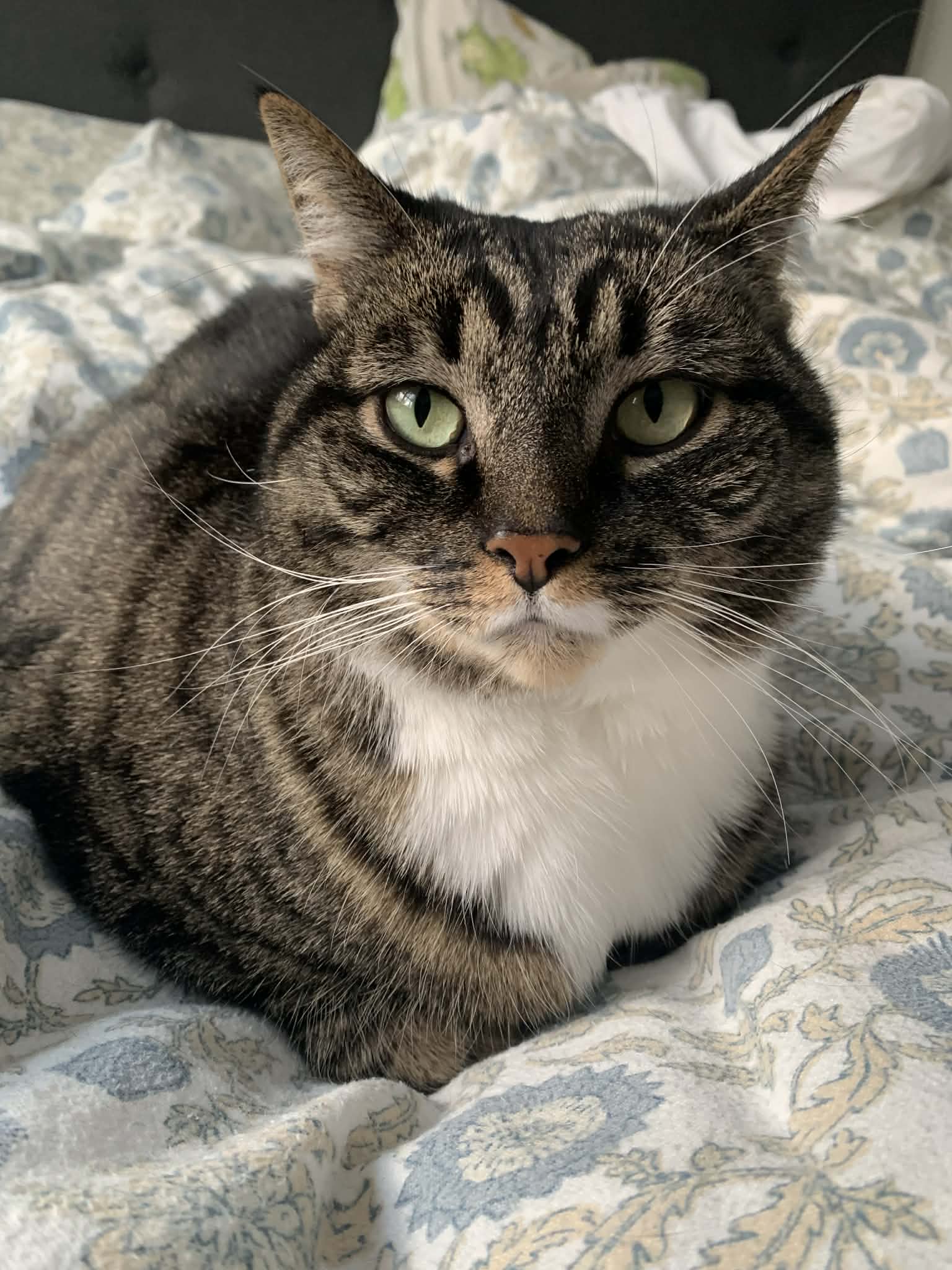 Hun har vist seg å også komme godt overens med andre katter; hun har måttet bli kjent med to nye her i huset og det har gått veldig bra. Pia er også veldig høflig, ordentlig og renslig.»