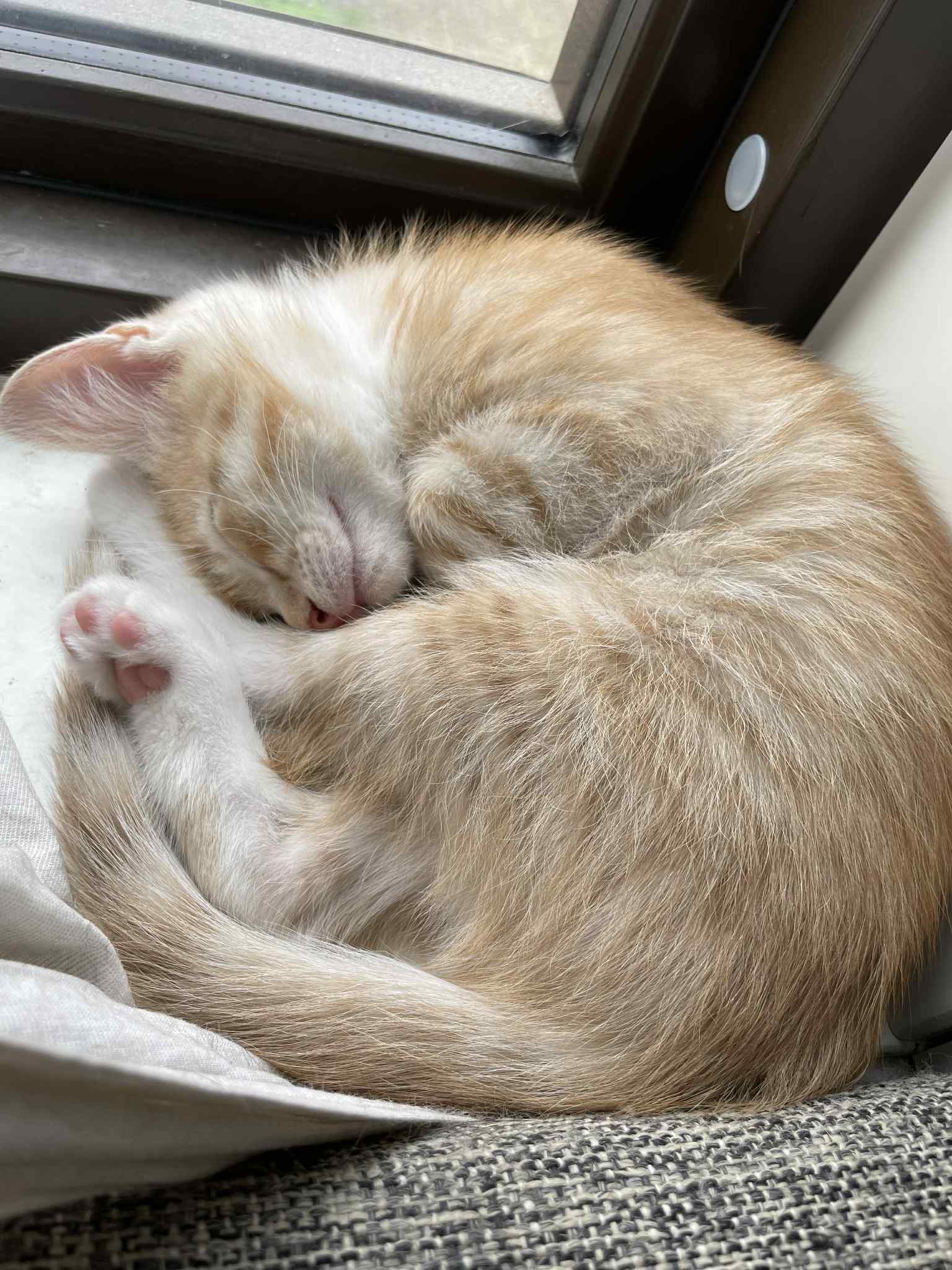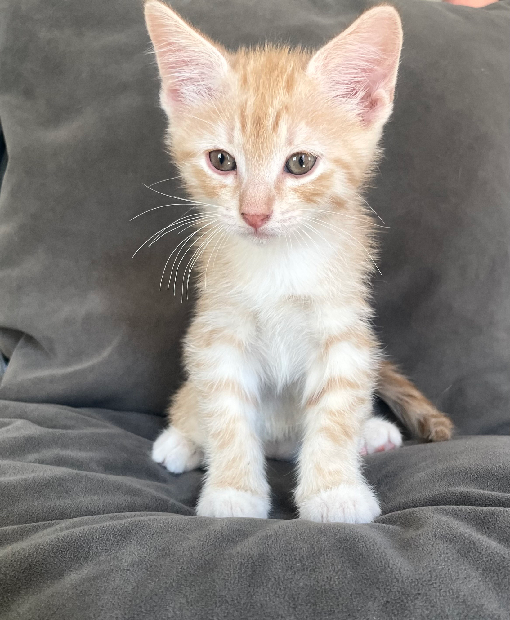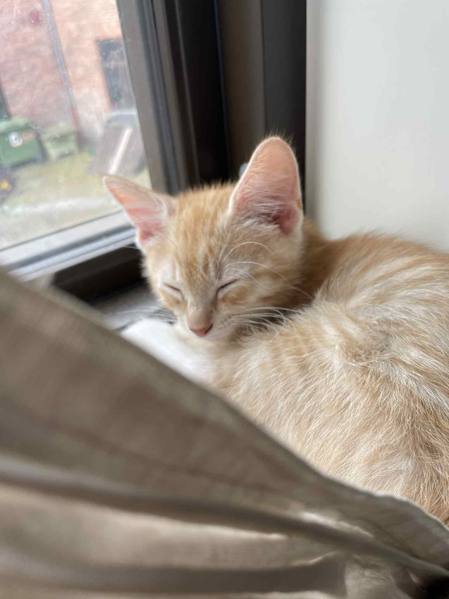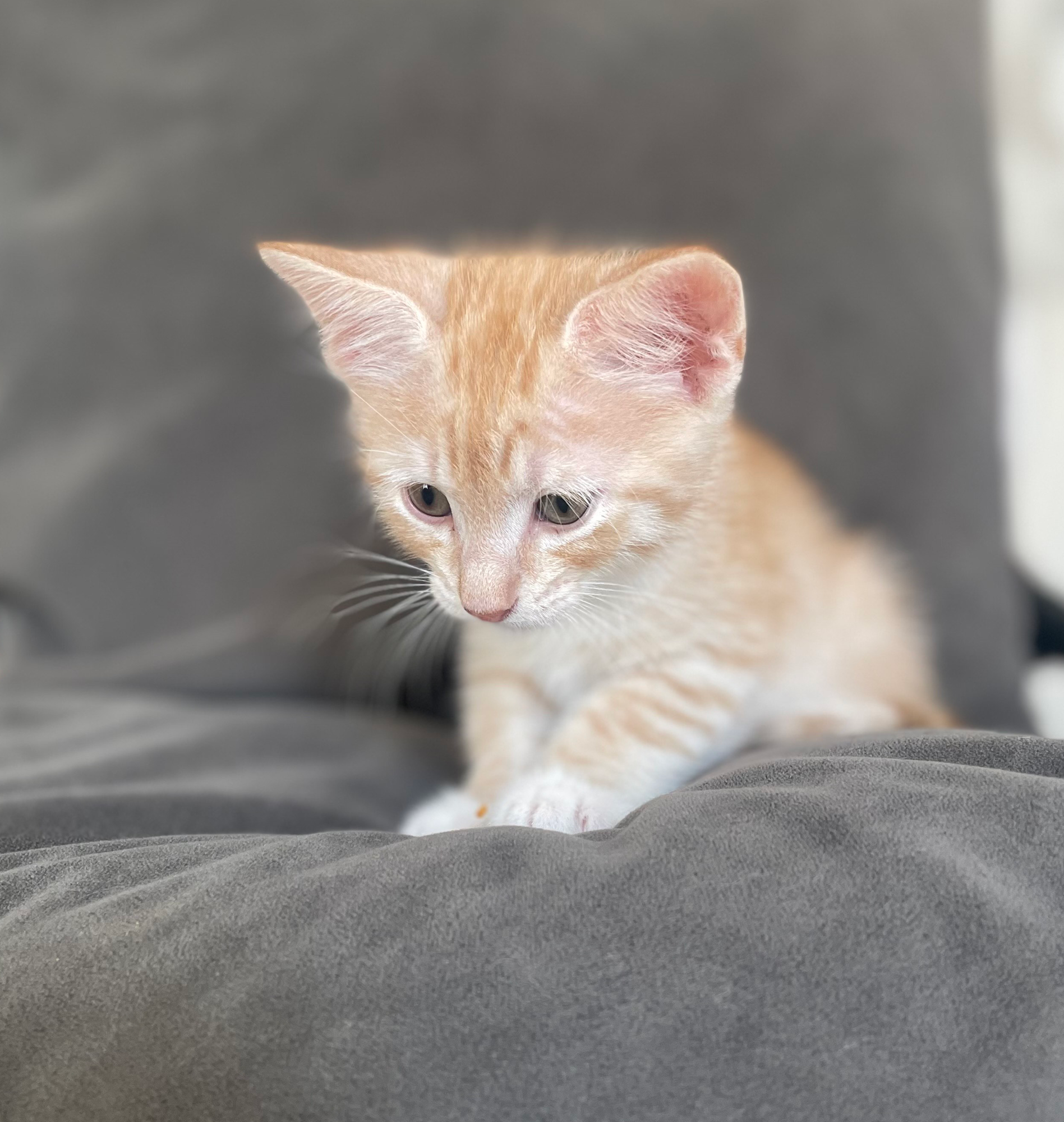 Røder kom inn til oss i juni 2025, bare et par uker gammel. Han kom til oss sammen med sin mor og søsken Hector, Hedda, Helmine og Hilma. Kattungene er født 29.05.2025.