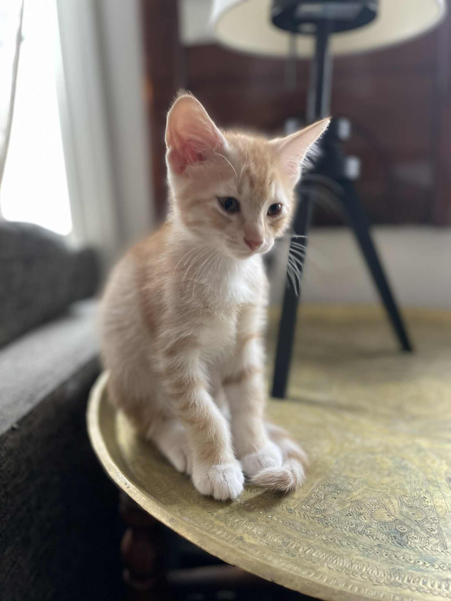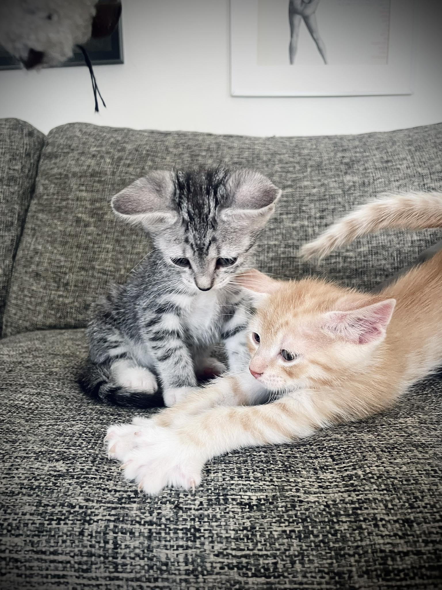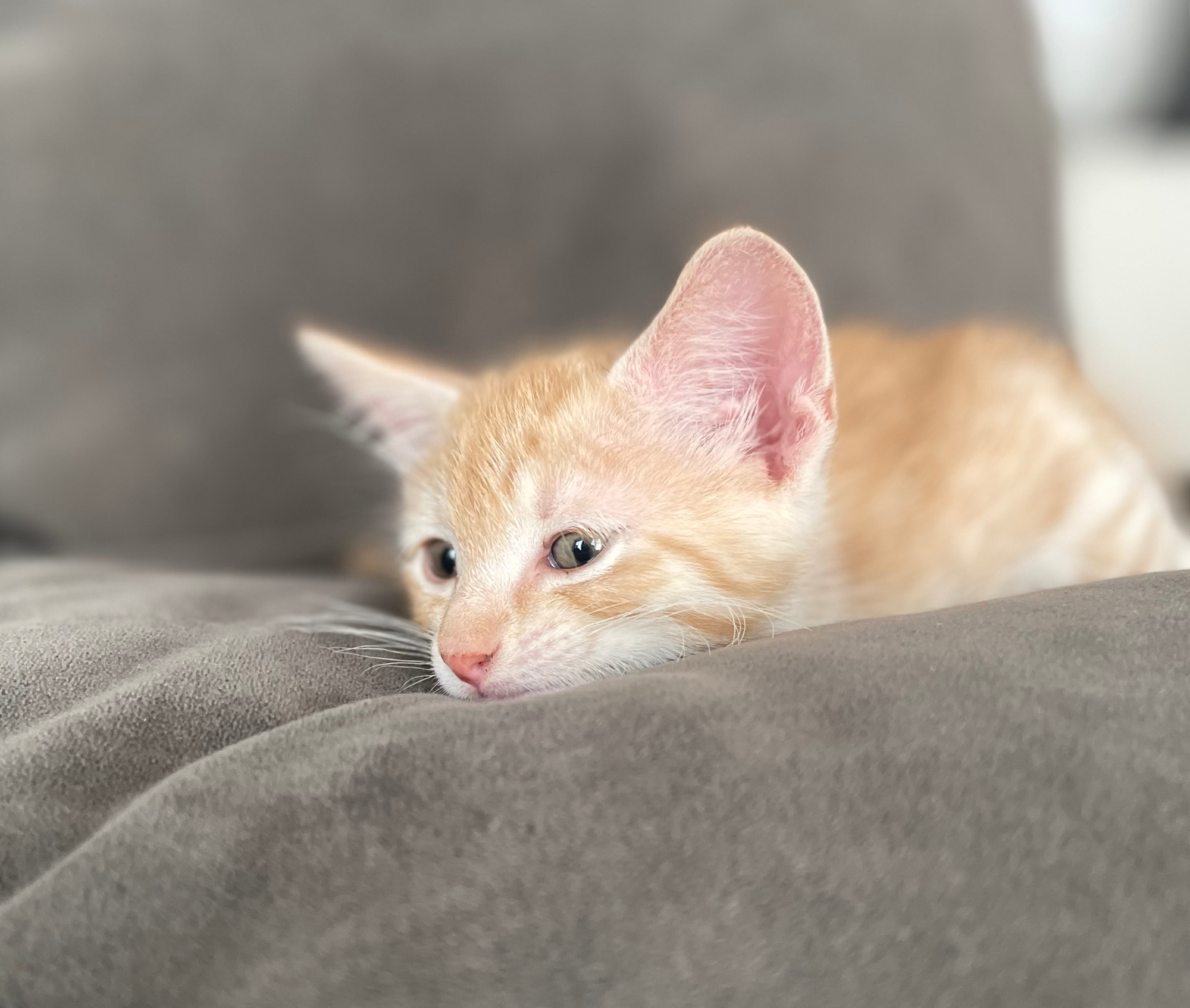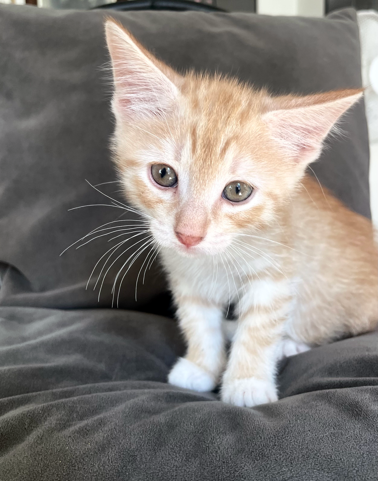 Røder kom inn til oss i juni 2025, bare et par uker gammel. Han kom til oss sammen med sin mor og søsken Hector, Hedda, Helmine og Hilma. Kattungene er født 29.05.2025.