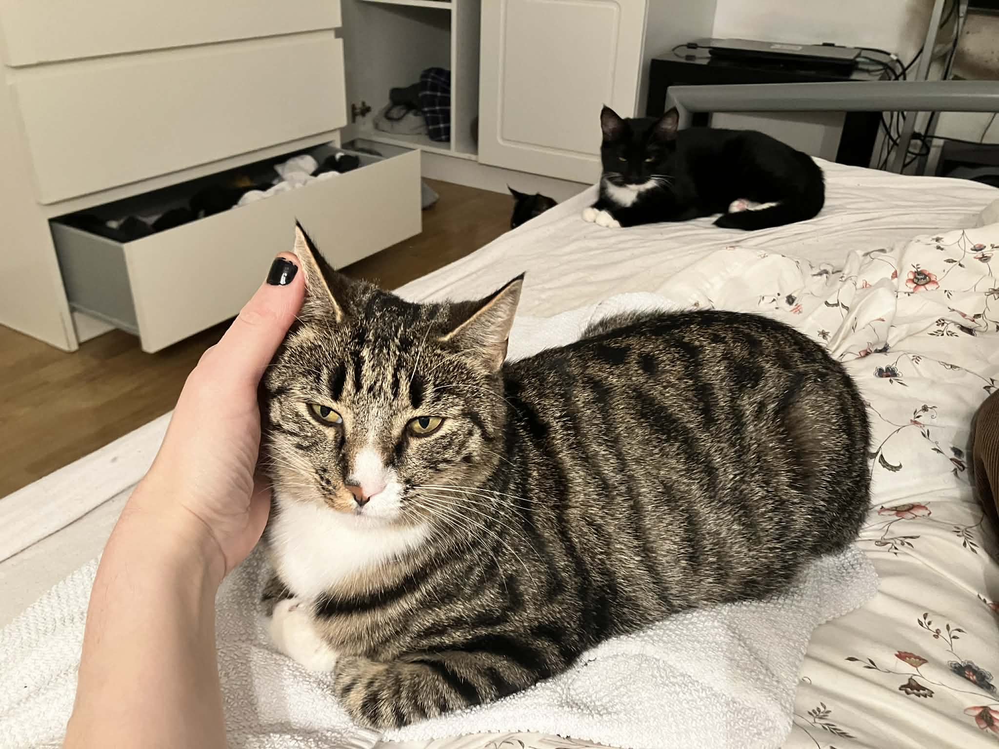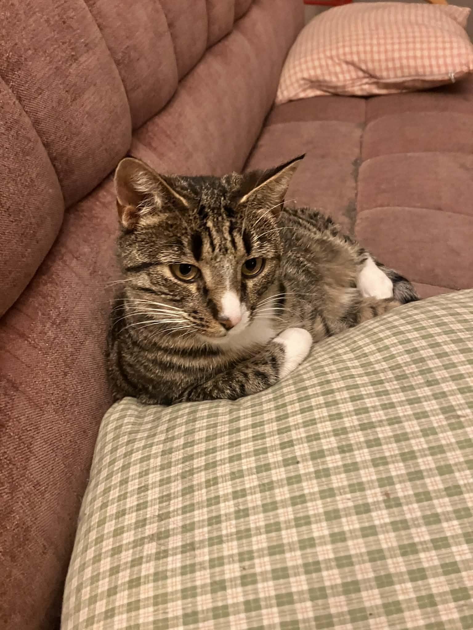Rosita kom inn til oss i juli 2025 sammen med sine tre små kattunger. De kom inn fra Rennebu, hvor hun hadde blitt observert gående ute i 2-3 måneder. Ved inntak var Rosita tam og tok imot kos, og etter et lite opphold i fosterhjem er hun nå kjempeklar for å finne sitt nye hjem! ♥ Hun har estimert fødselsdato 01.01.2024.