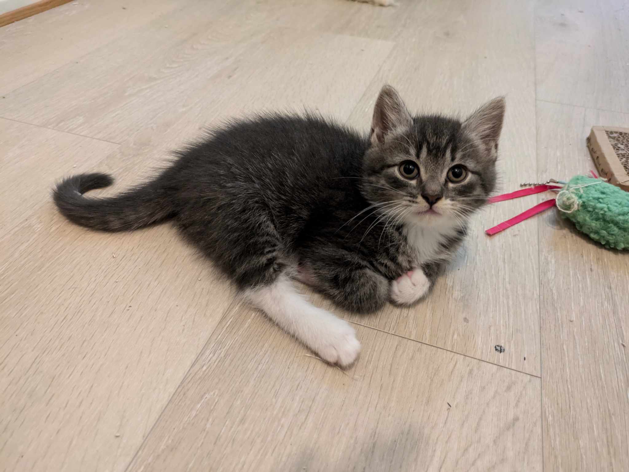 Sonny kom inn til oss sammen med sin mor Solrun og sine fire søsken Sebbe, Soffi, Sofus og Sølver i juni 2024 fra Selbu, hvor de hadde blitt født ute i en låve. Kattungene er antatt født 14.06.2024 og var kun noen få dager gamle ved inntak.