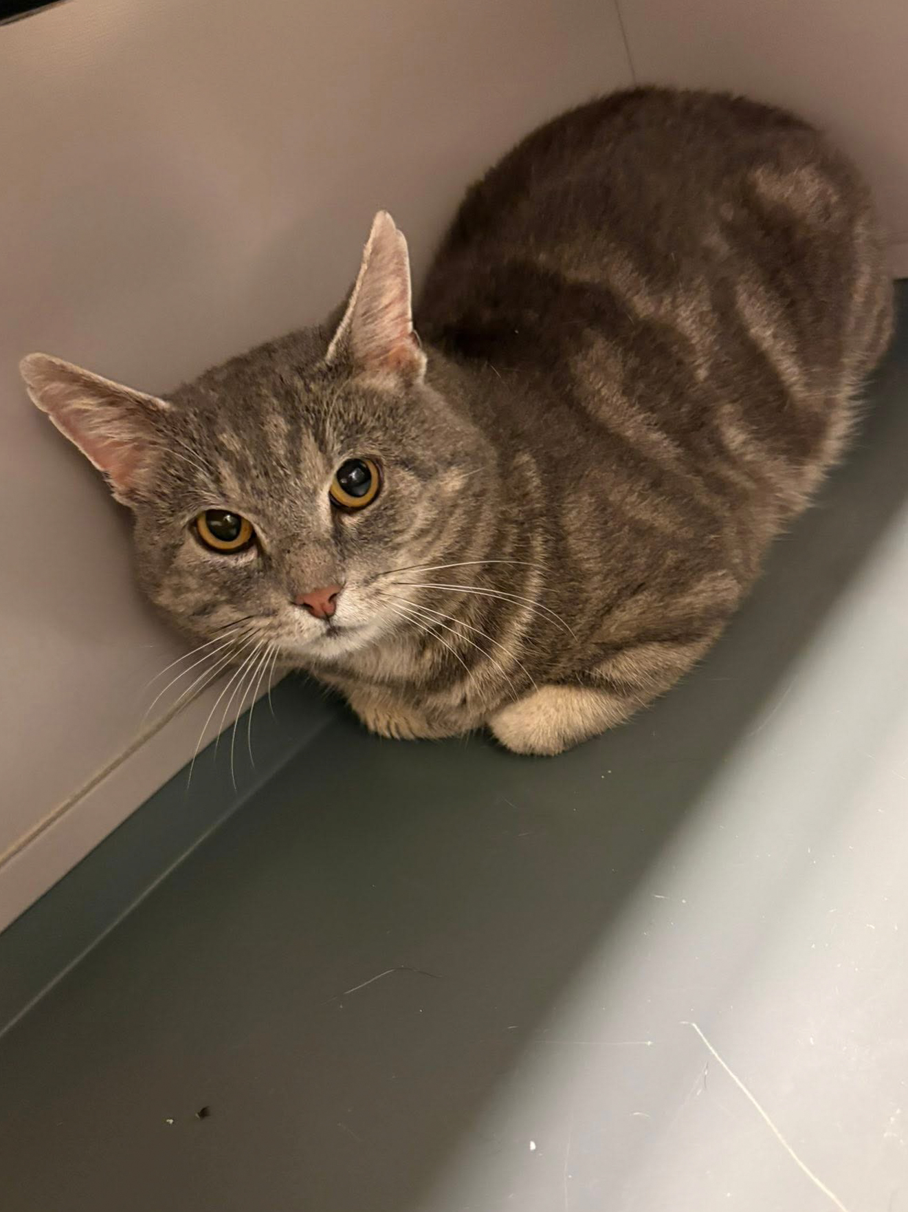 Denne hannkatten kom inn til oss fra Utset på Hitra, hvor han hadde blitt observert gående ute i 1 1/2 år og eier har blitt etterlyst lokalt uten hell. Han er dessverre verken kastrert eller ID-merket.